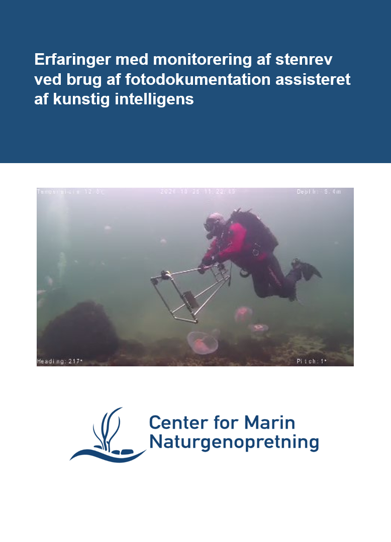 Denne tekniske rapport gennemgår praktiske overvejelser i forbindelse med anvendelsen af billedbaseret monitorering af marine habitater. Metoden muliggør indsamling af data af frivillige organisationer og anvendelsen af kunstig intelligens til at analysere dækningsgrader af substrat, flora og fastsiddende fauna. Resultaterne er baseret på en case udført i forbindelse med forundersøgelser for et genopretningsprojekt af et stenrev udført for Vordingborg kommune. Rapporten afvejer fordele og ulemper ved anvendelsen af metoden som et muligt alternativ til traditionelle monitoreringsmetoder